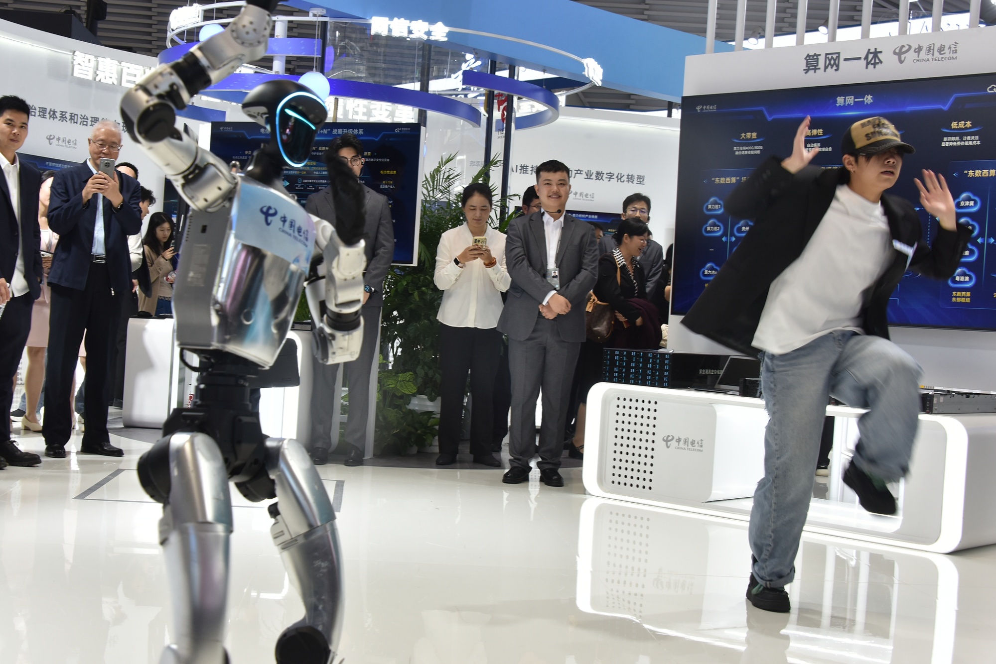 浙江乌镇,“互联网之光”博览会现场优配好油,机器人与观众互动
