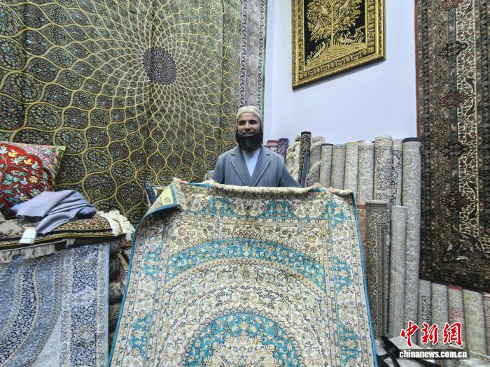 11月8日,拉赫展示羊毛毯。 中新网记者 钟升 摄